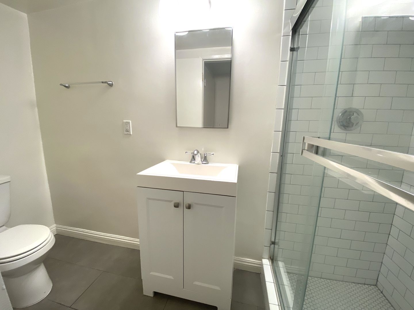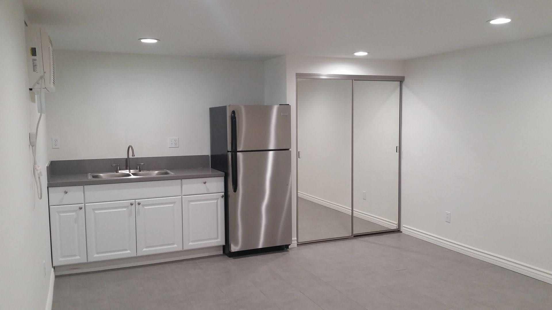 -- 1 very large bedroom and bathroom on the lower level with separate additional private entrance, mirrored closet doors and separate mini-kitchen space with sink and fridge